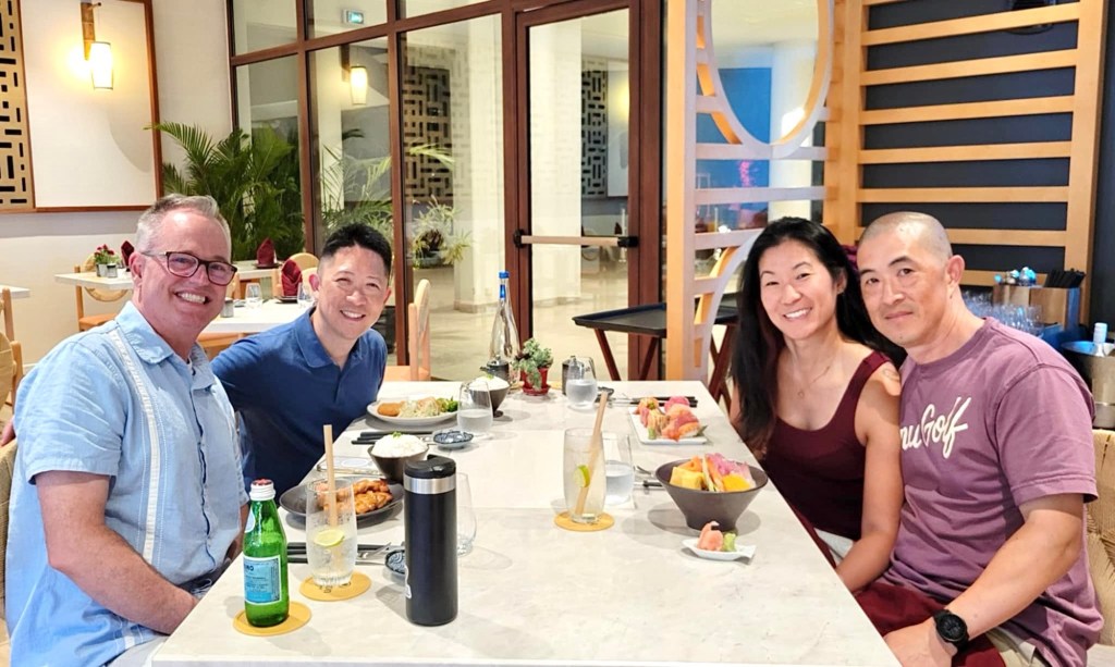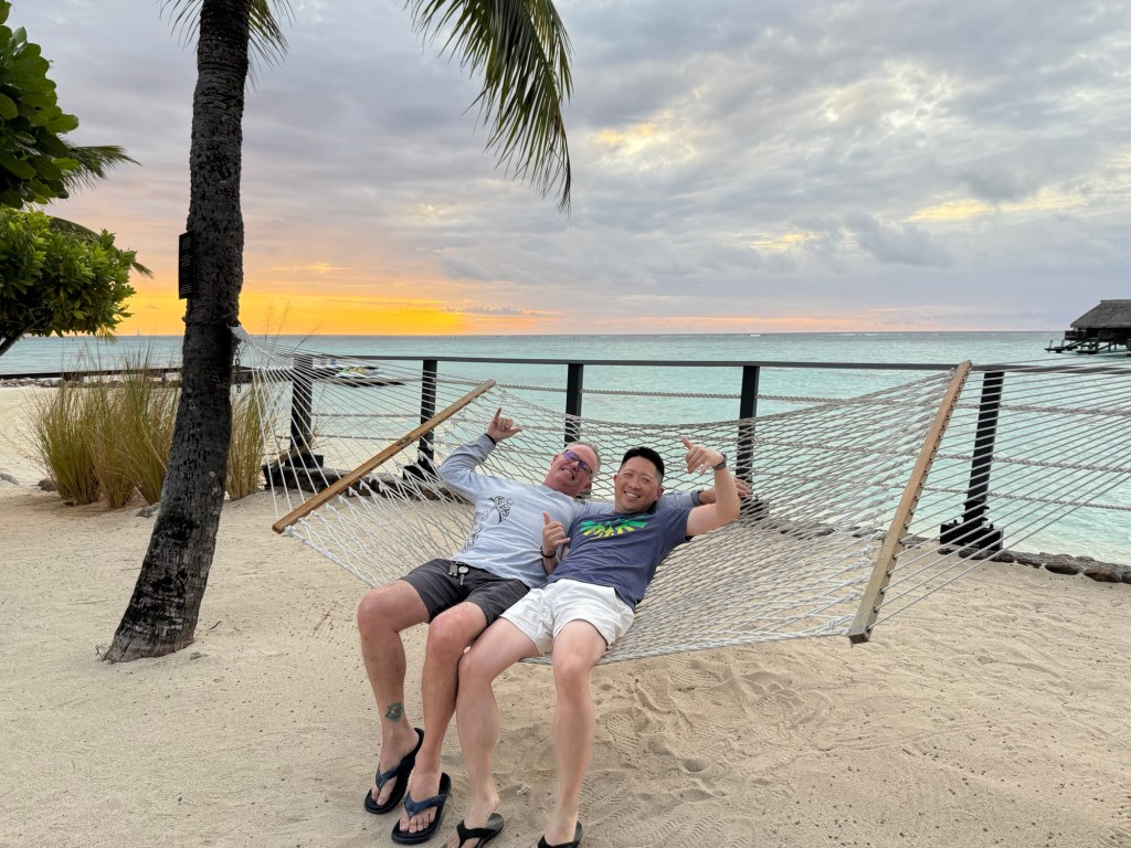 One just like it came and got me. To get to the airport you wander through some back canals and then zip across the lagoon to the airport. It’s a really fun ride and the boat is luxurious.