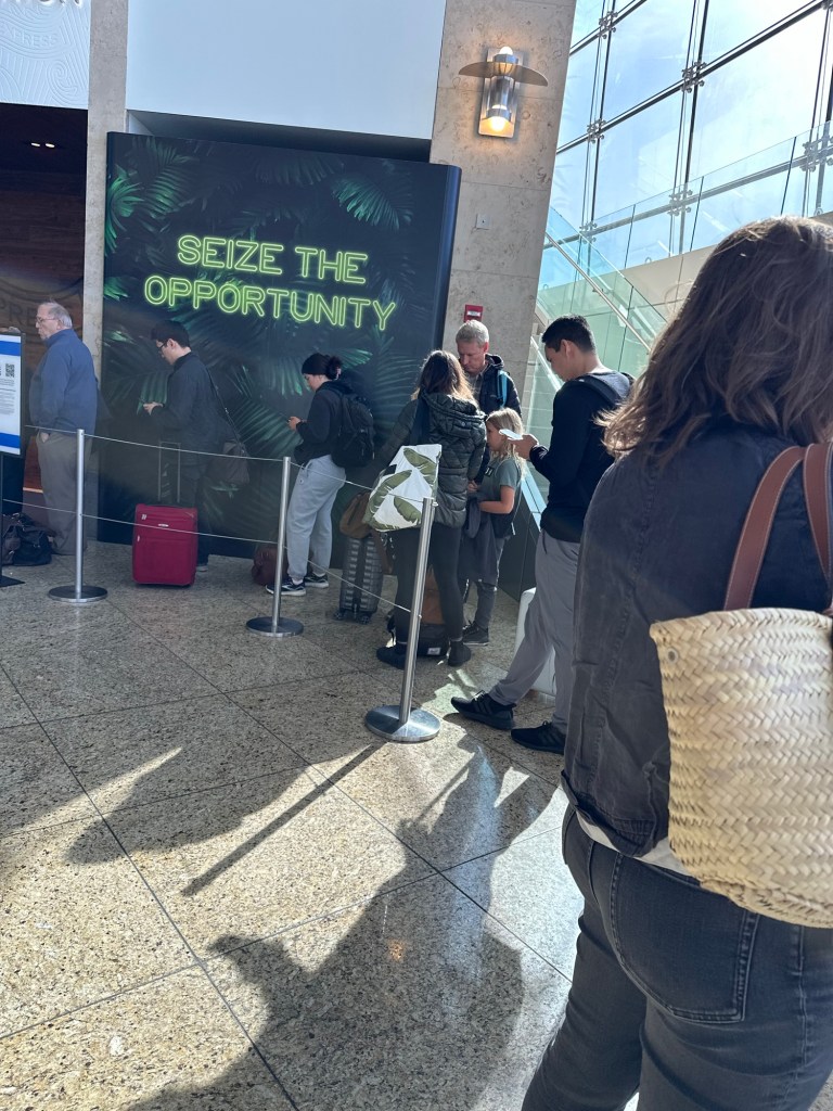 There was a bit of a line to get into the Centurion Lounge. The wait was worth it. I had a nice lunch that included a delicious tostada made for me by a pop-up chef whipping them up in the lounge. It was just a morsel but it was one of the most amazing and flavorful bite of food I’ve ever had.