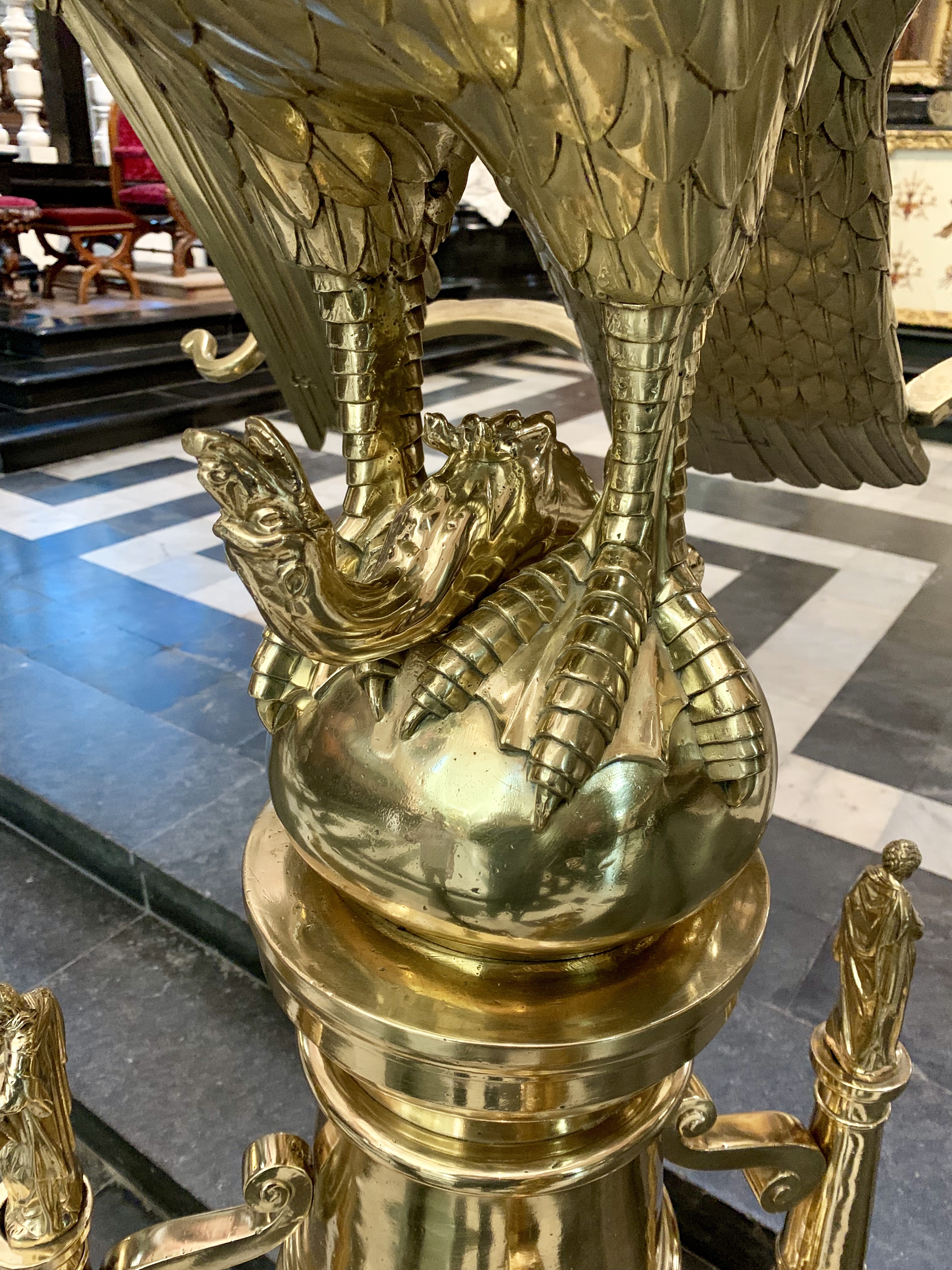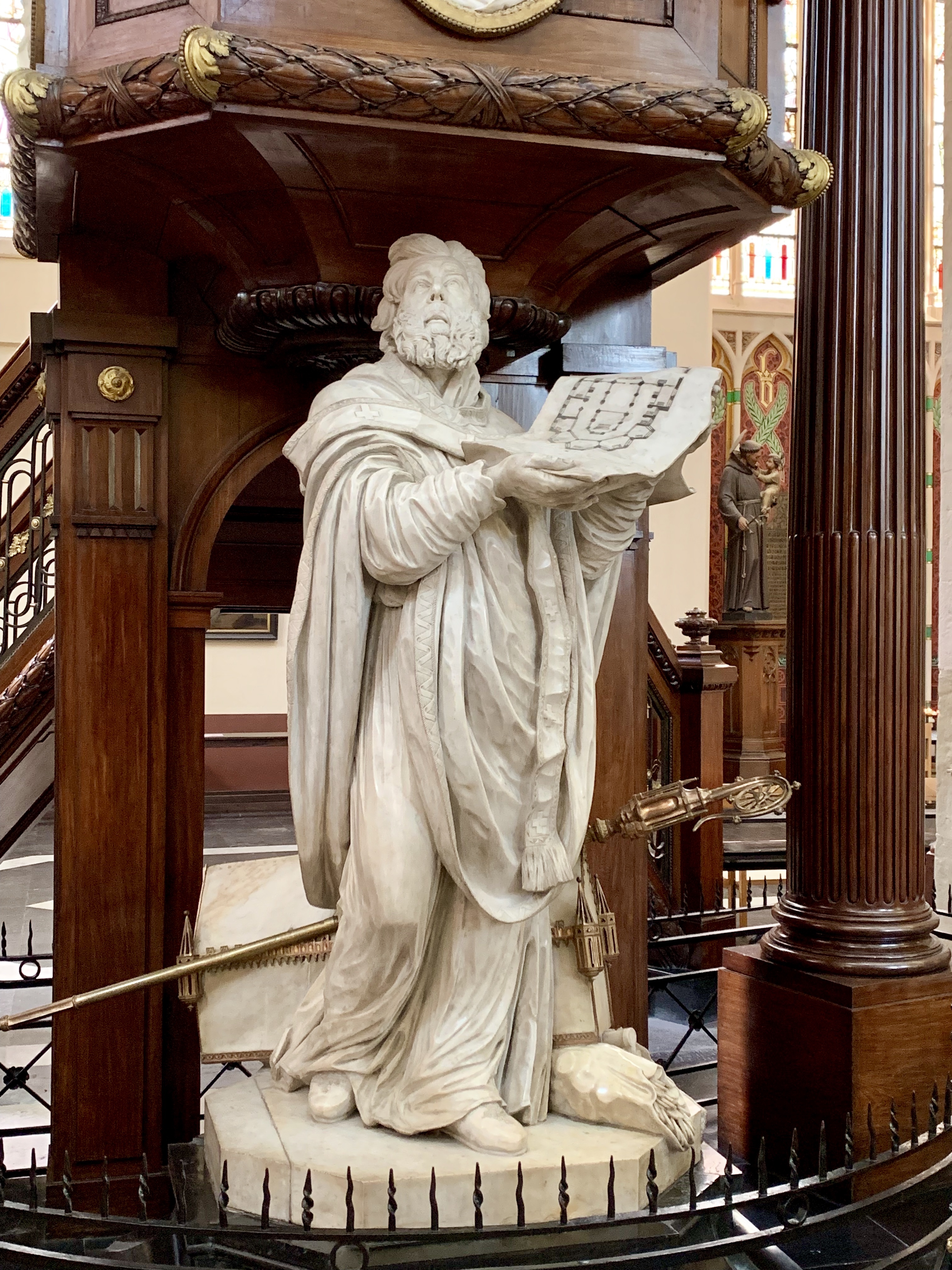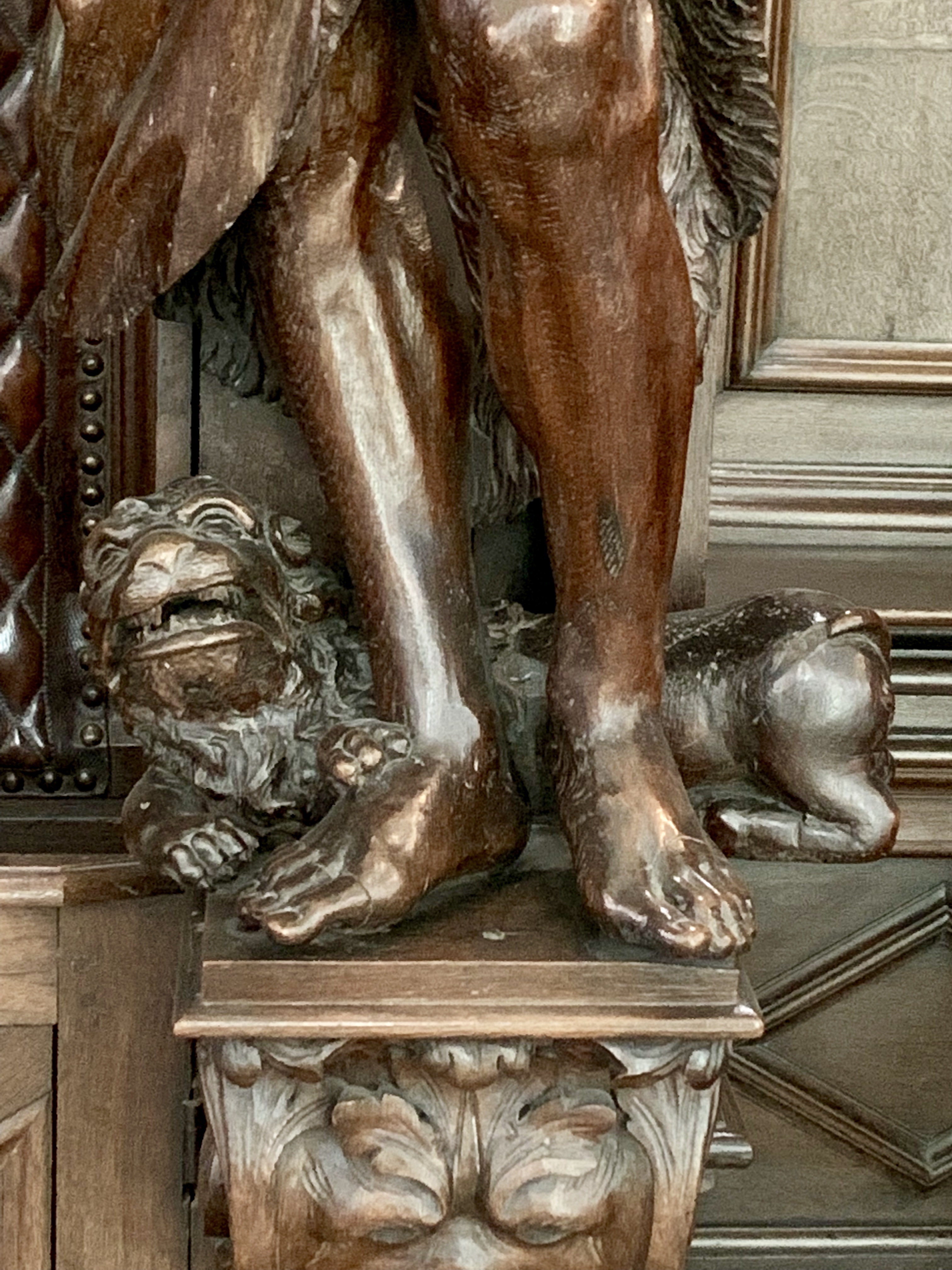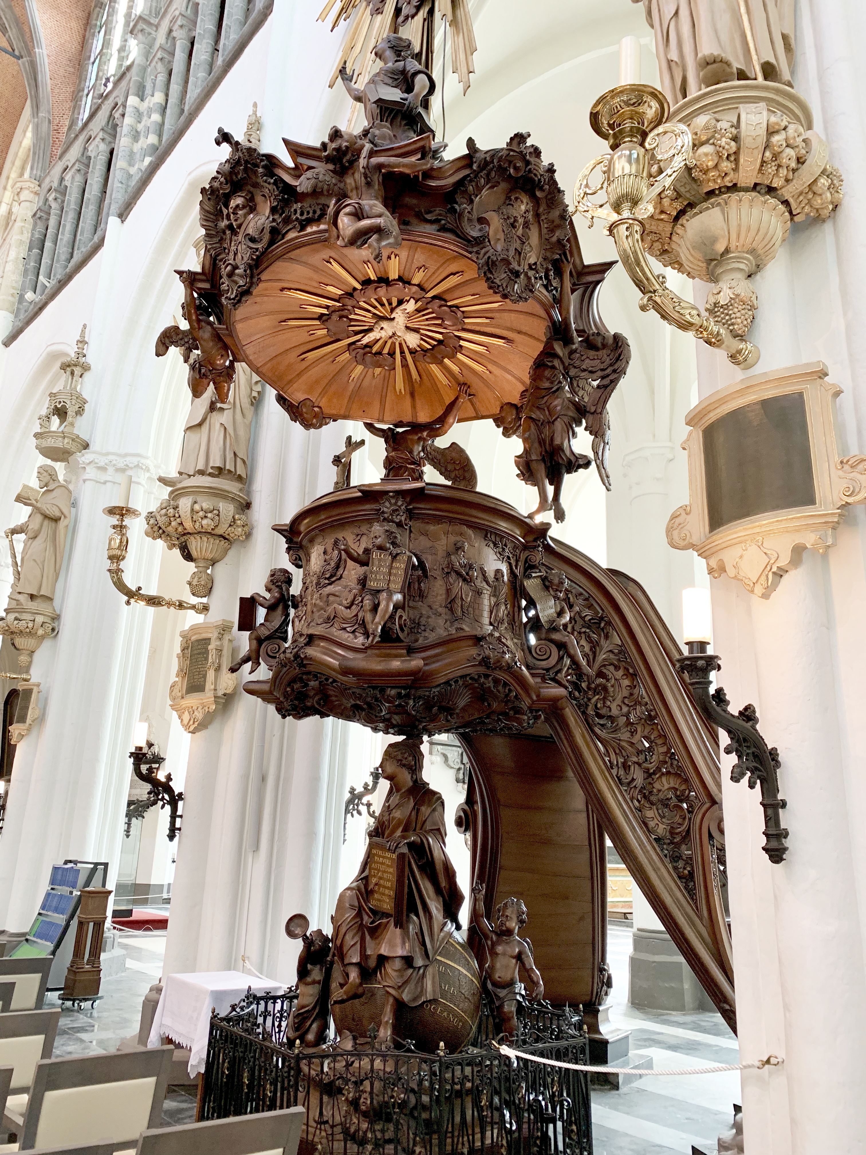 The pulpit was lively as well. The whole thing looks like it rests on the human figure at the bottom.