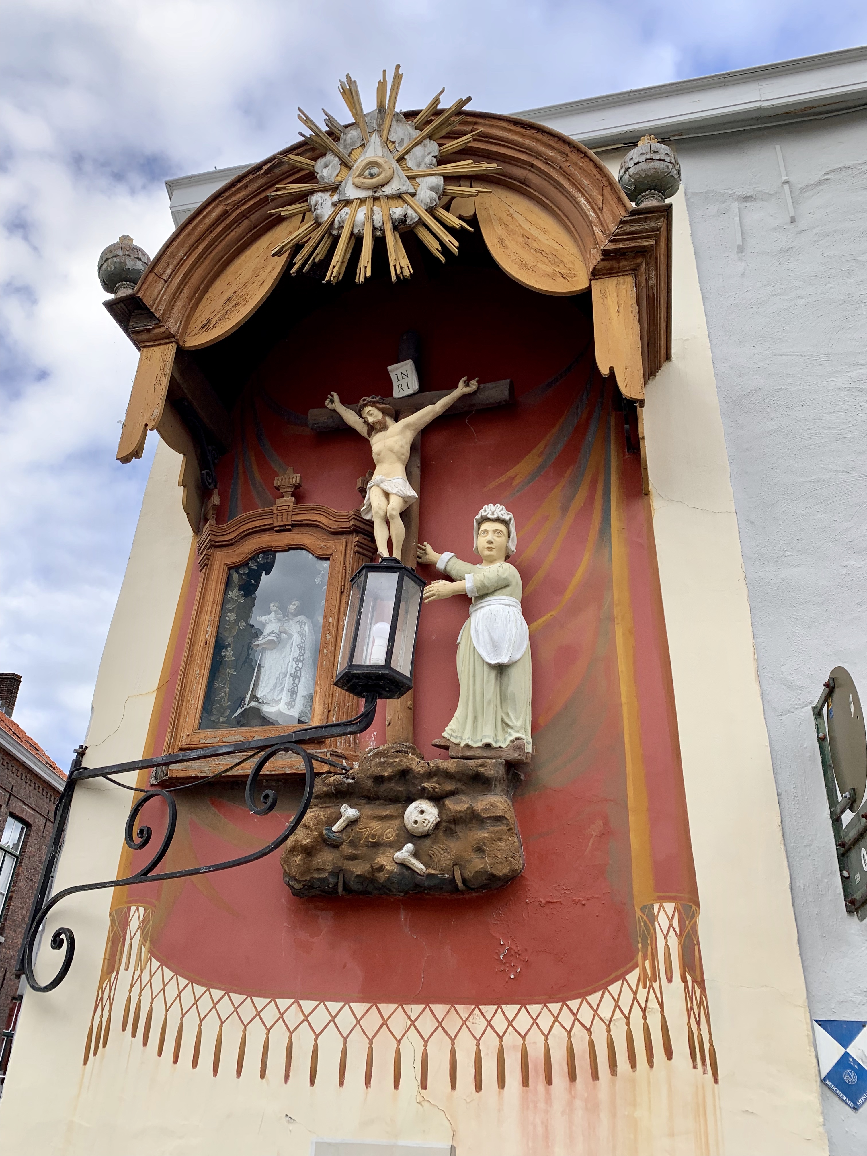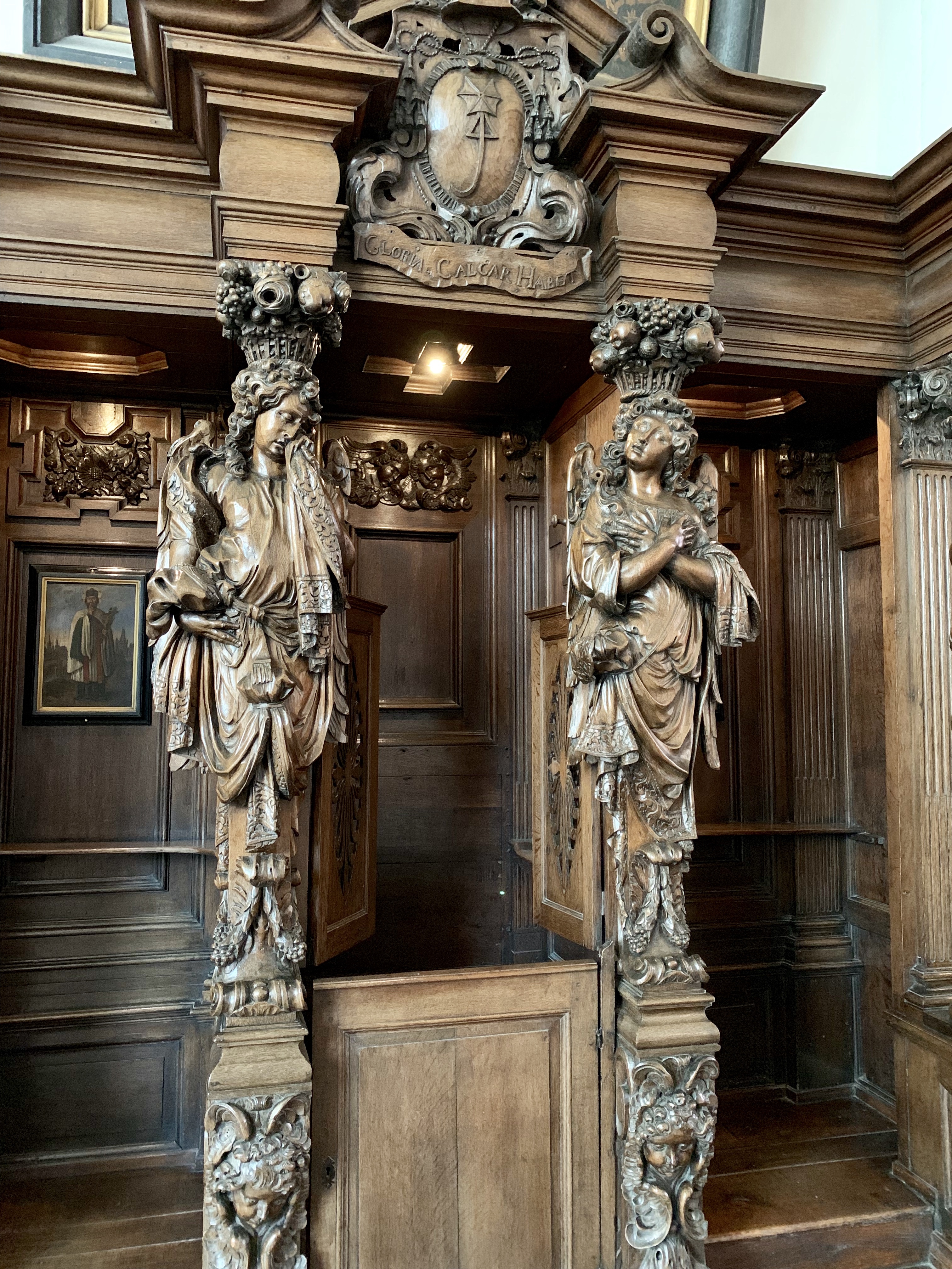The above confessional was neat. I think the angel on the left represents being burdened with sin and the one on the right is set free by confessing her sins. At least that’s how it reads for me…