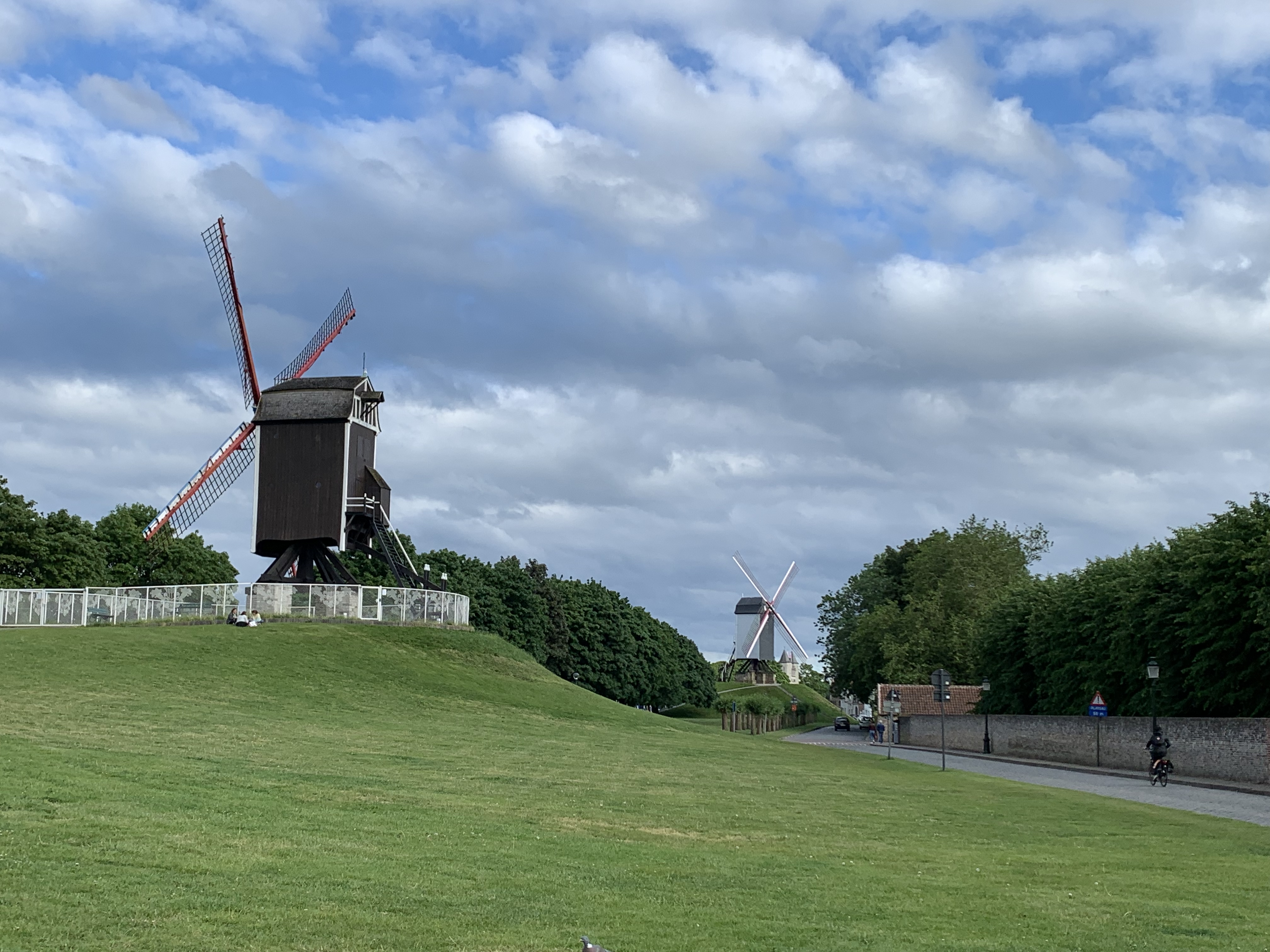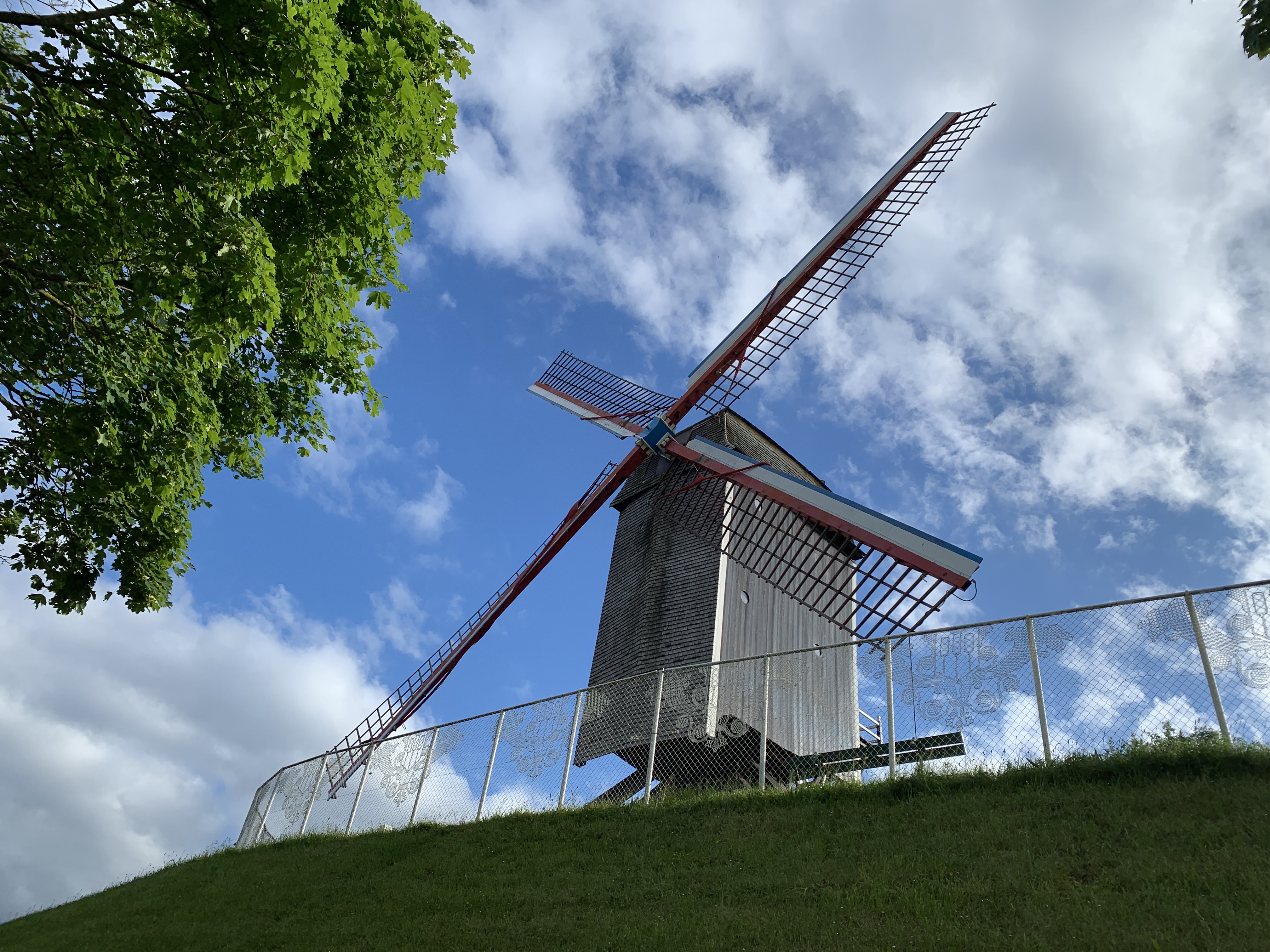 We could see on our little tourist map we were pretty close to one of the windmills that circle the town along the moat.