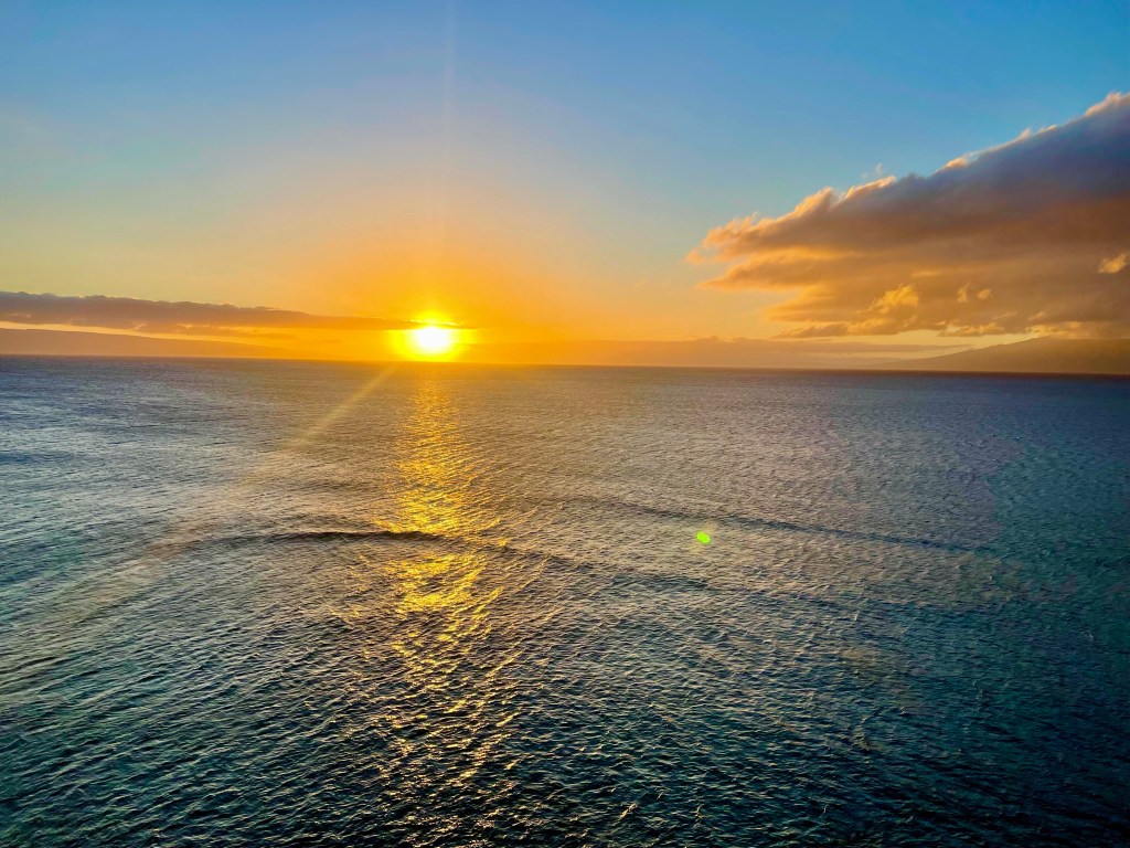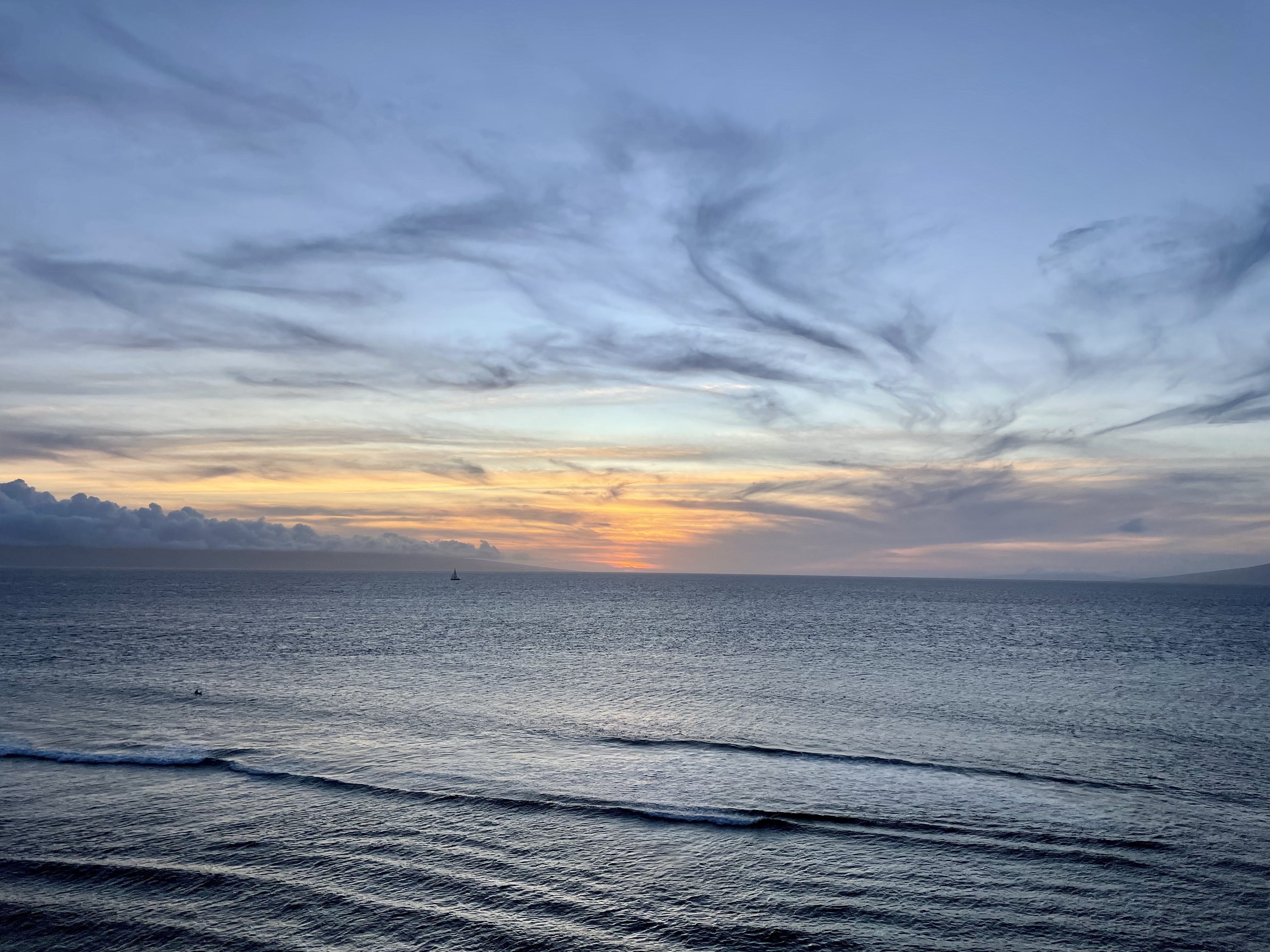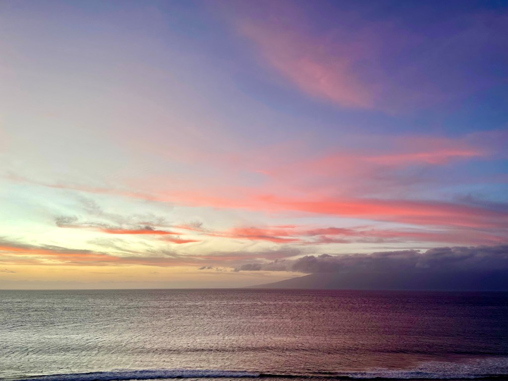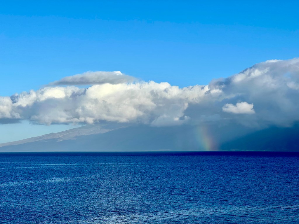 It’s lovely to watch the light and clouds change these views throughout the day. Mike caught this rainbow in front of Molokai this morning.