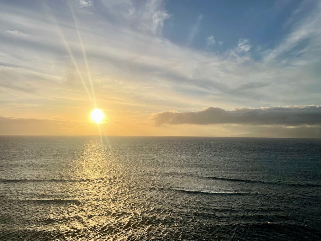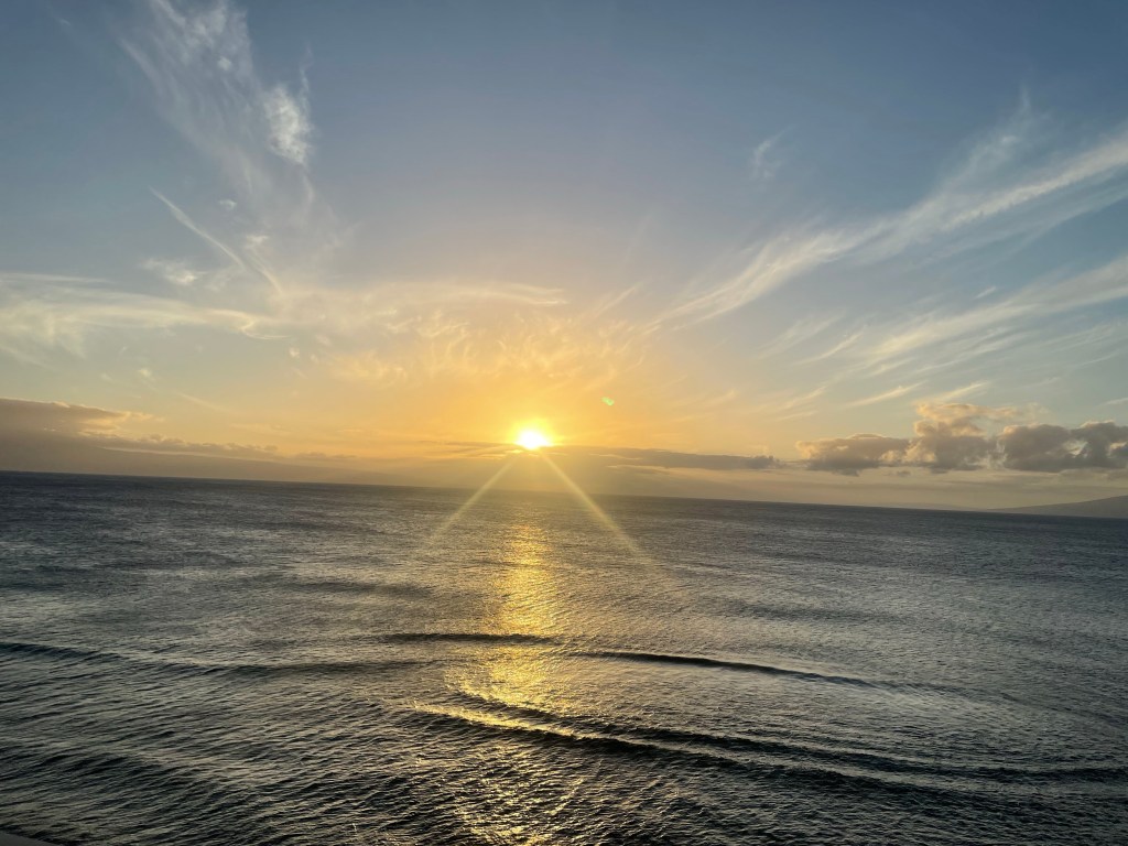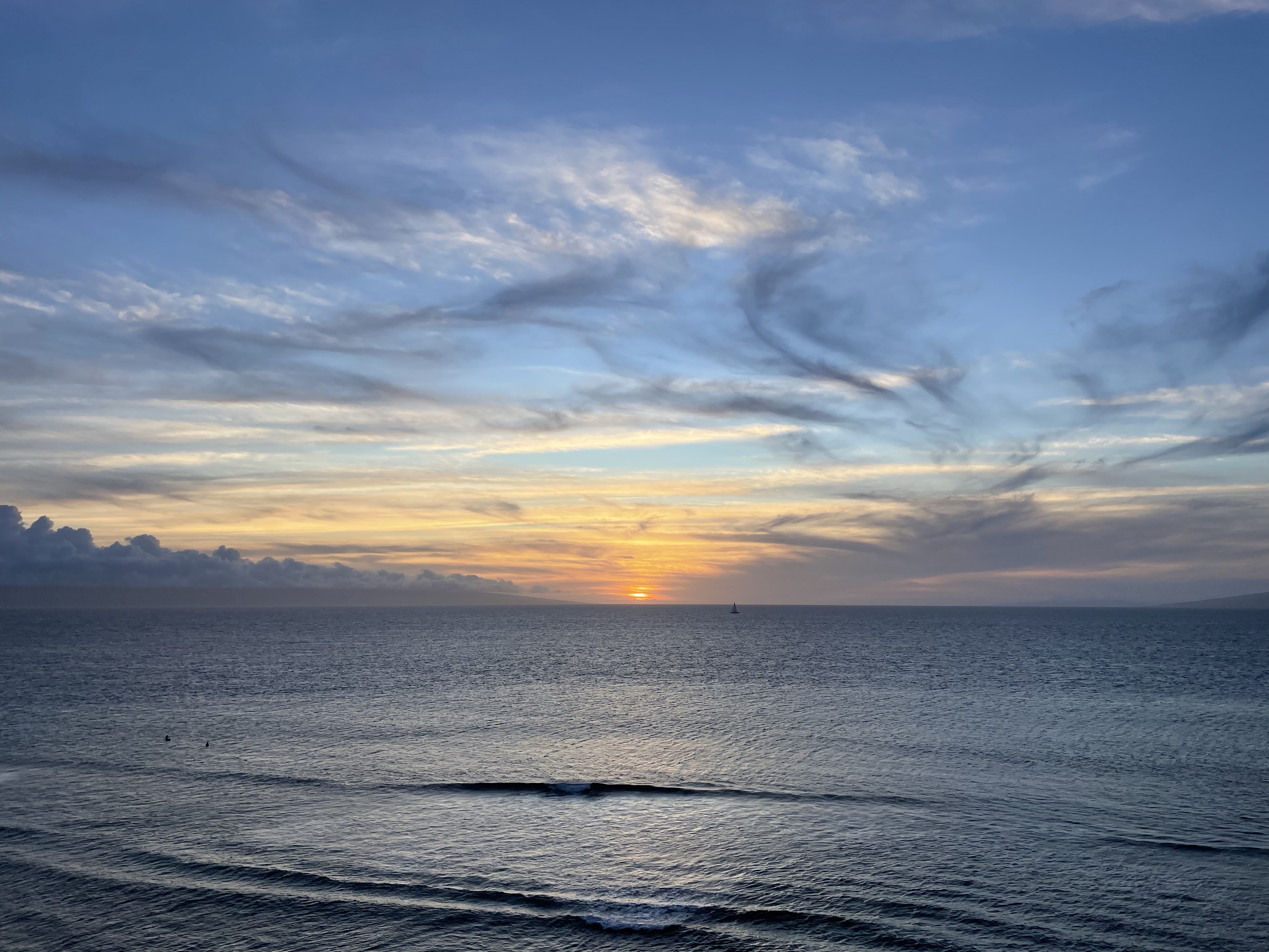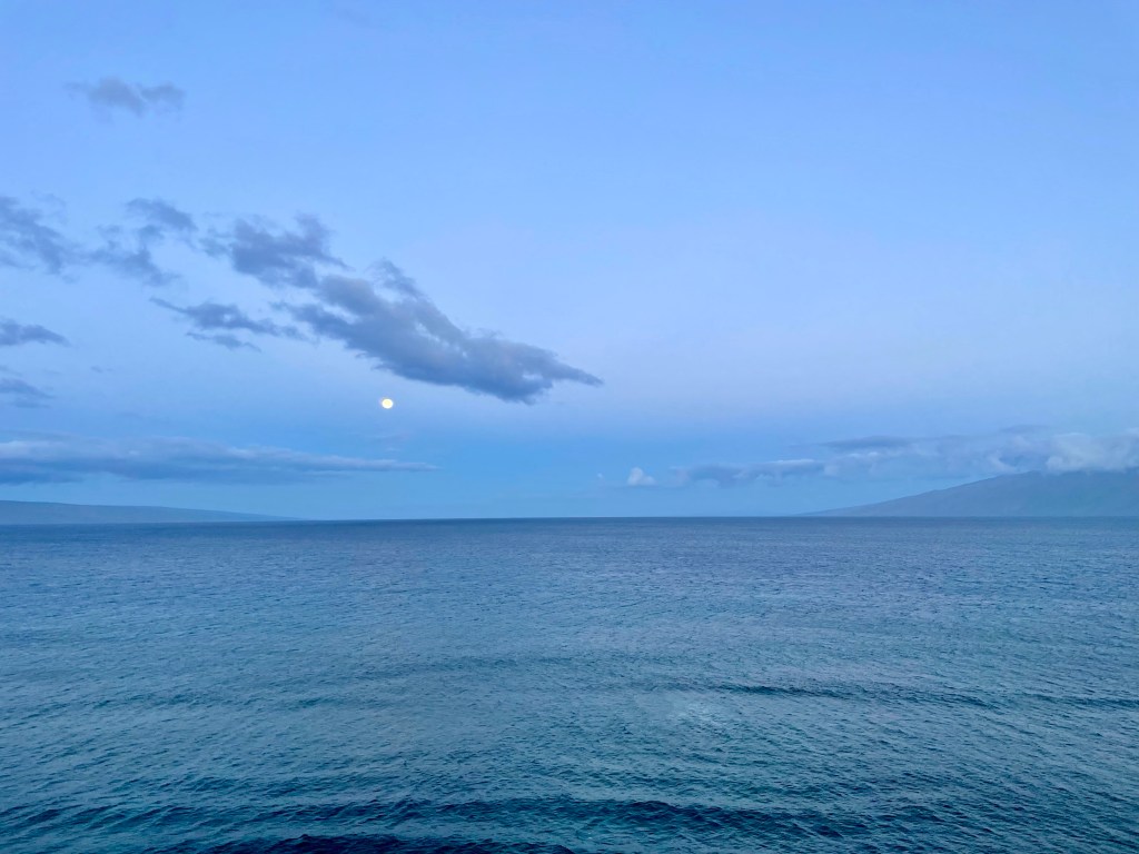 It’s lovely to watch the light and clouds change these views throughout the day. Mike caught this rainbow in front of Molokai this morning.