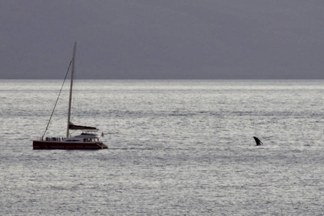 We hung out on the Lanai (Hawaiian for balcony) and whale watched for several hours. Mike got some great pictures with his nice camera. I took a turn and got these shots of a whale’s tail.