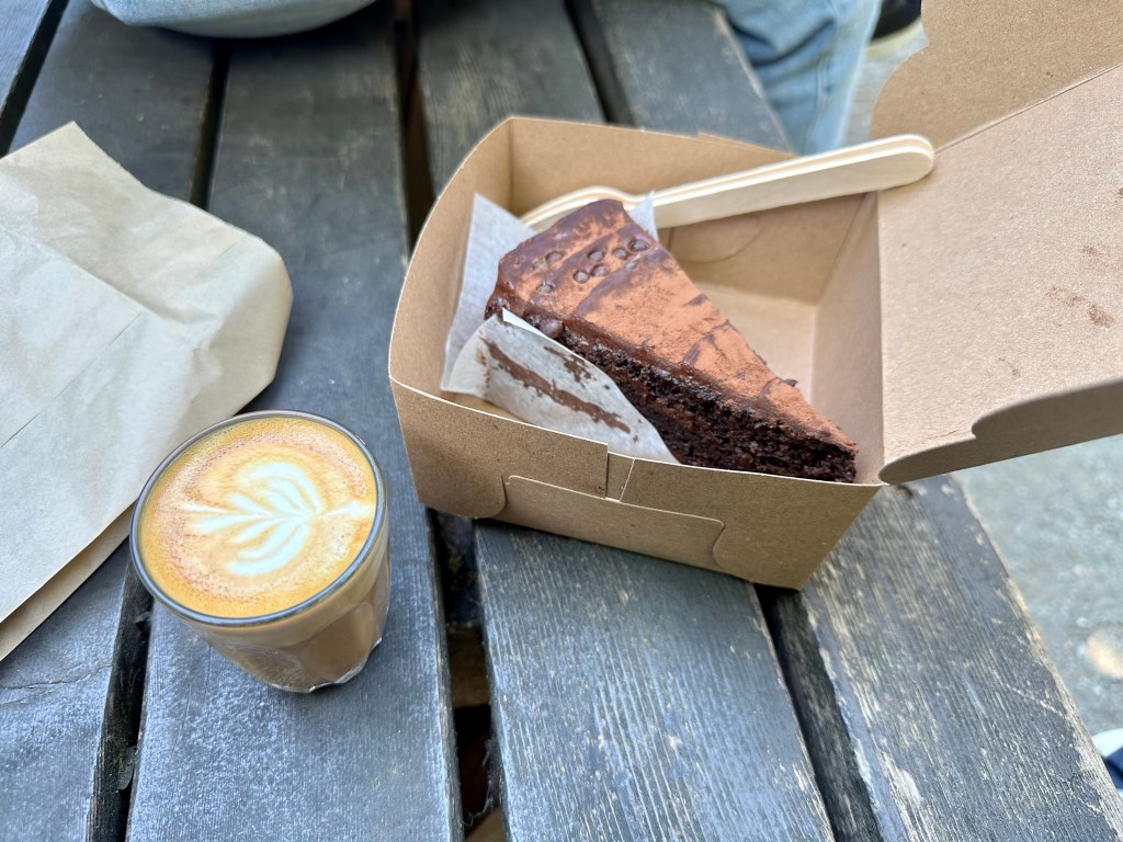 Mrs. Trunchbull’s Chocolate cake and an espresso macchiato.