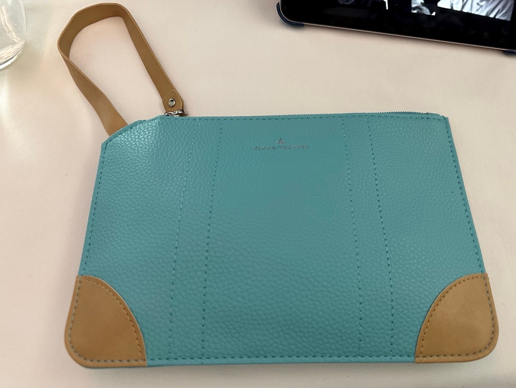 The business class seat is quite comfortable. It came with a cute amenity kit made by Globe Trotter. Lip balm (which I forgot so I’m grateful for that!), face mist, eye mask and tooth brush.