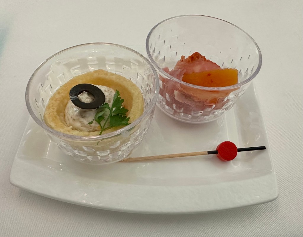 I chose the Japanese Dinner and it started with a little crab salad in a pastry shell and some lovely ham with a little piece of apricot. Yummy starters.