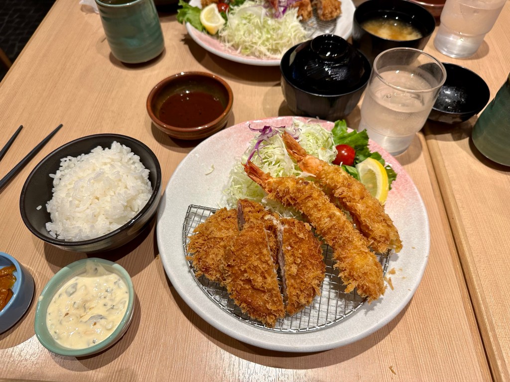 Fried shrimp and pork with some lovely accompaniments.