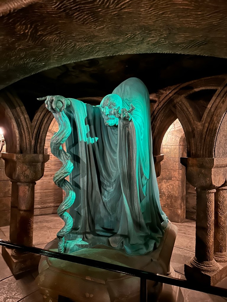 There we rode The Forbidden Journey of Harry Potter. We rode this in Florida back in 2012 and really enjoyed it. The dark ride smoothly flies you through a combination of practical and projected scenes all around Hogwarts Castle. It’s a remarkable piece of technology though some of the projected scenes are beginning to show their age.