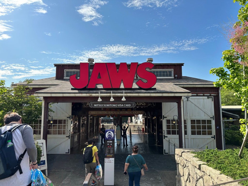 I was ridiculously excited about riding JAWS because a) I’ve never ridden this version before, I’ve only been on the “studio tour” in Hollywood Universal and seen the shark there and b) this is the last JAWS ride in the world. How to describe it…hmmm. Imagine if Disney’s Jungle Cruise ride took itself seriously and add a big shark. Plus add some universal style special effects (at Universal something has either got to catch fire or get you wet.) Despite its ridiculousness I loved it.