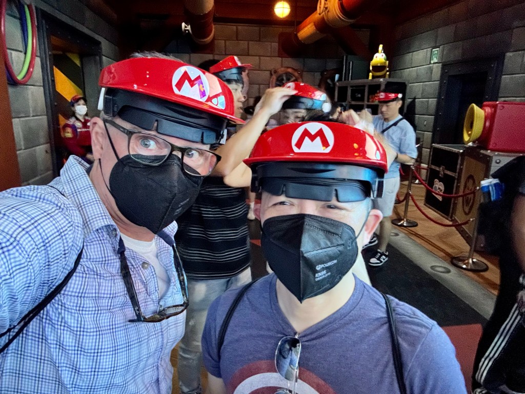 Power Up Bands Me in the AppArt and Mike in Mario head gear required to ride the Mario Cart: Koopa’s Challenge ride.