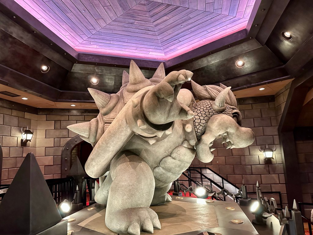 There are two rides in this part of the park, Yoshi’s Adventure and Mario Kart: Koopa’s Challenge. The first is a kids ride that was pretty but thats about it. Mario Kart is where the fun was. Based on the video game of the same name this ride combines practical sets and virtual graphics projected in a small clear plastic visor you wear as you “drive” a cart racing against the bad guy, Bowser.