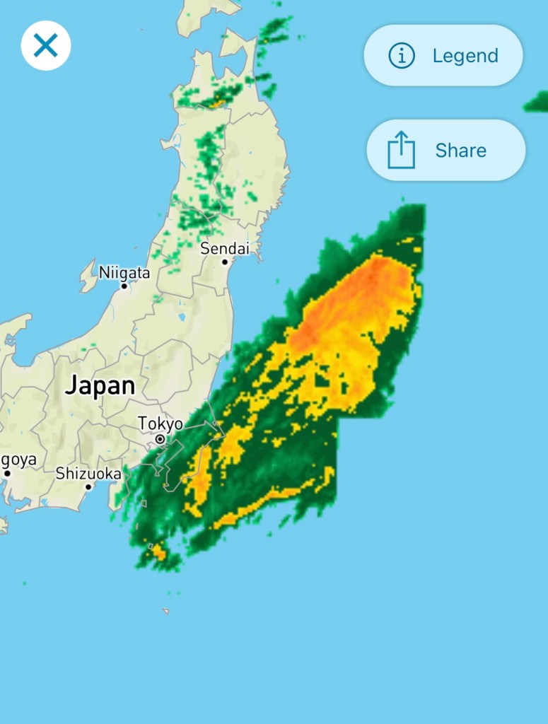 For dinner Mike was conveniently craving Japanese food so we went back the the Tonkatsu place we’d eaten at on our first day. We took it back to the room this time and feasted while watching a steady stream of soaked people exit the park.