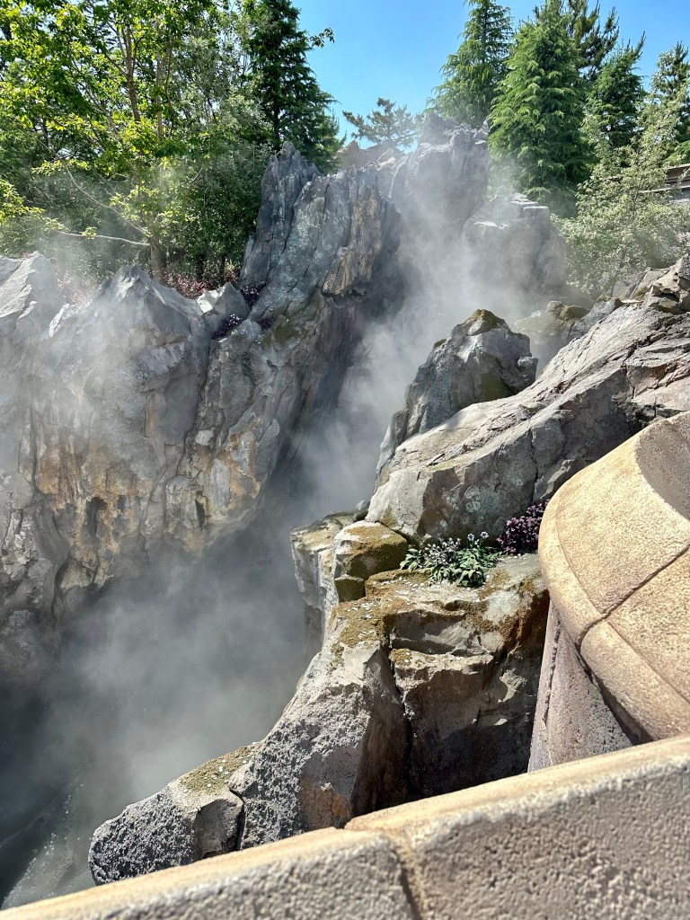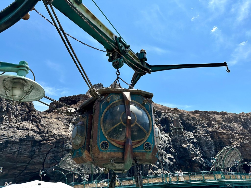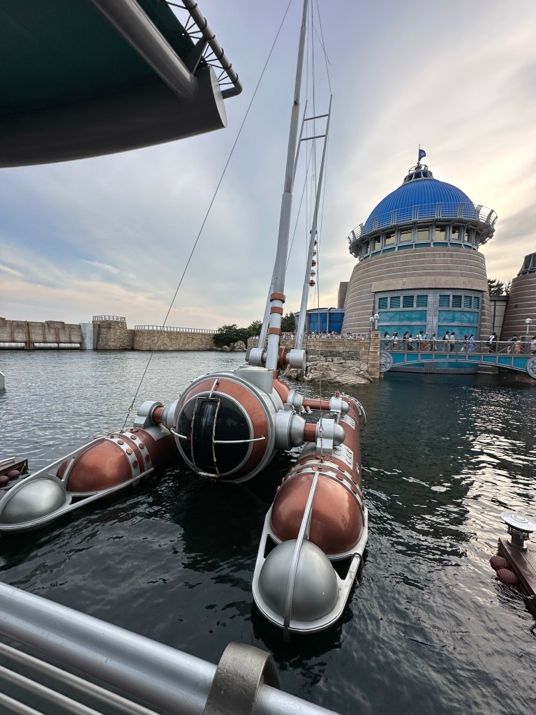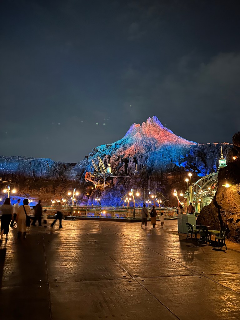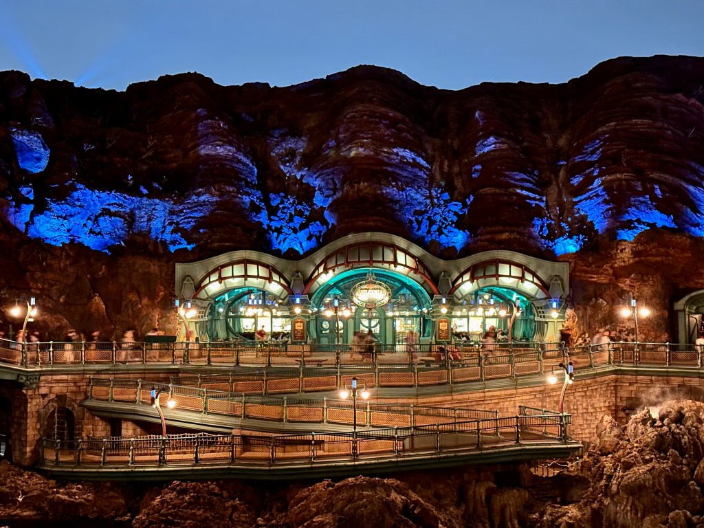 A couple of things. First, Disney Sea is divided into “ports of call” rather than lands like a traditional Disney park, like Fantasy Land, Tomorrow Land, etc. In preparation for this trip I read the book Journey to the Center of the Earth by Jules Verne. The port of call Mysterious Island is Jules Verne inspired. The book was…dated. But it did end with the adventurers being jettisoned out of the center of the earth much like happens at the peak of this ride.