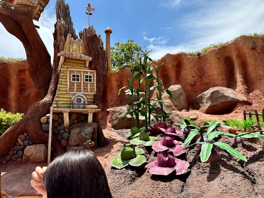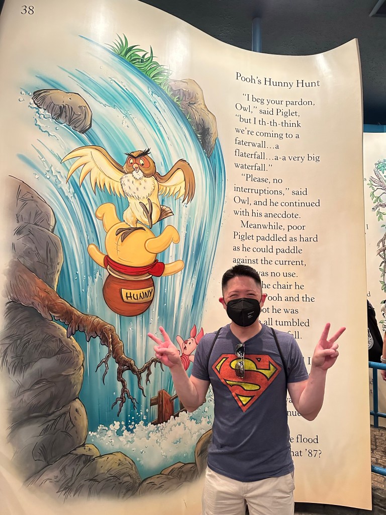 We then headed over to ride Winnie the Pooh’s Hunny Hunt. This was a ride we were so excited to experience our last trip here. It was just as fun this time and we made some friends while standing in line. We also got stickers!