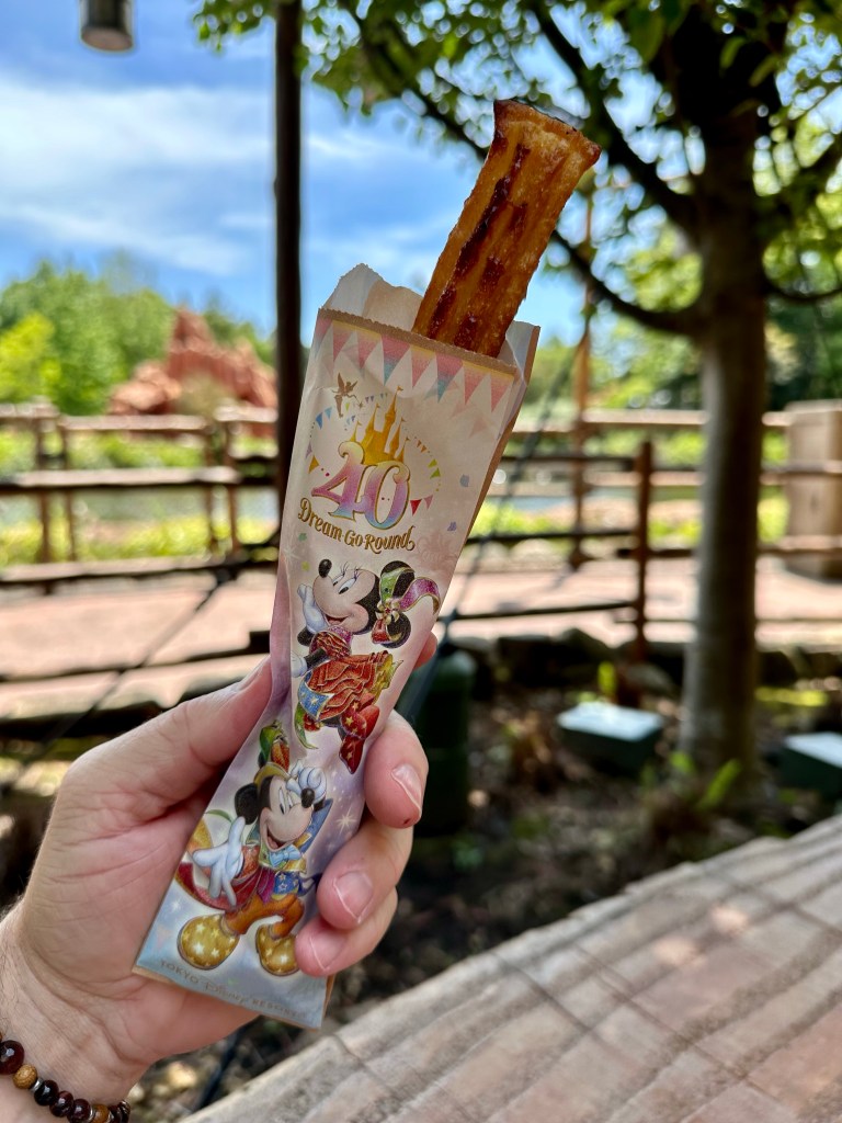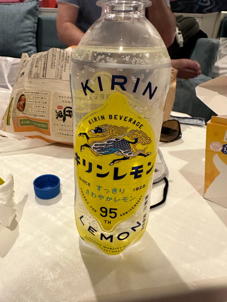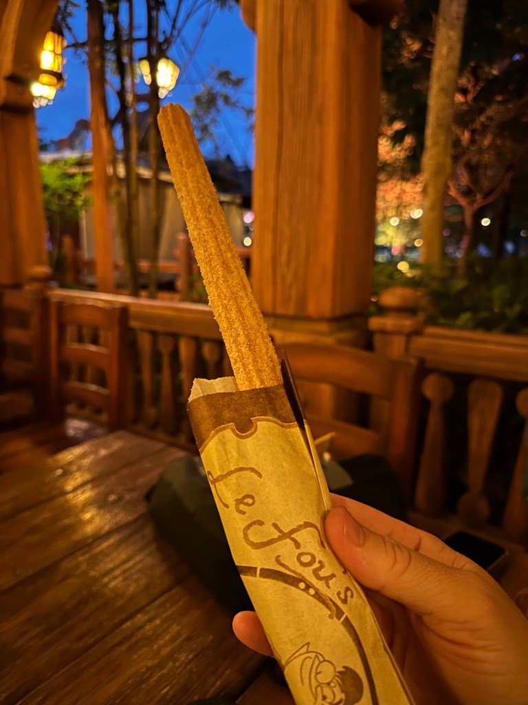 By this point it was time for lunch. We had a weird but delicious beef sandwich where the “bread” were two Mickey shaped rice patties. It was great! We also had a Kirin Lemon soda which was also delicious and our favorite! The crème brûlée churro we had was mediocre at best.