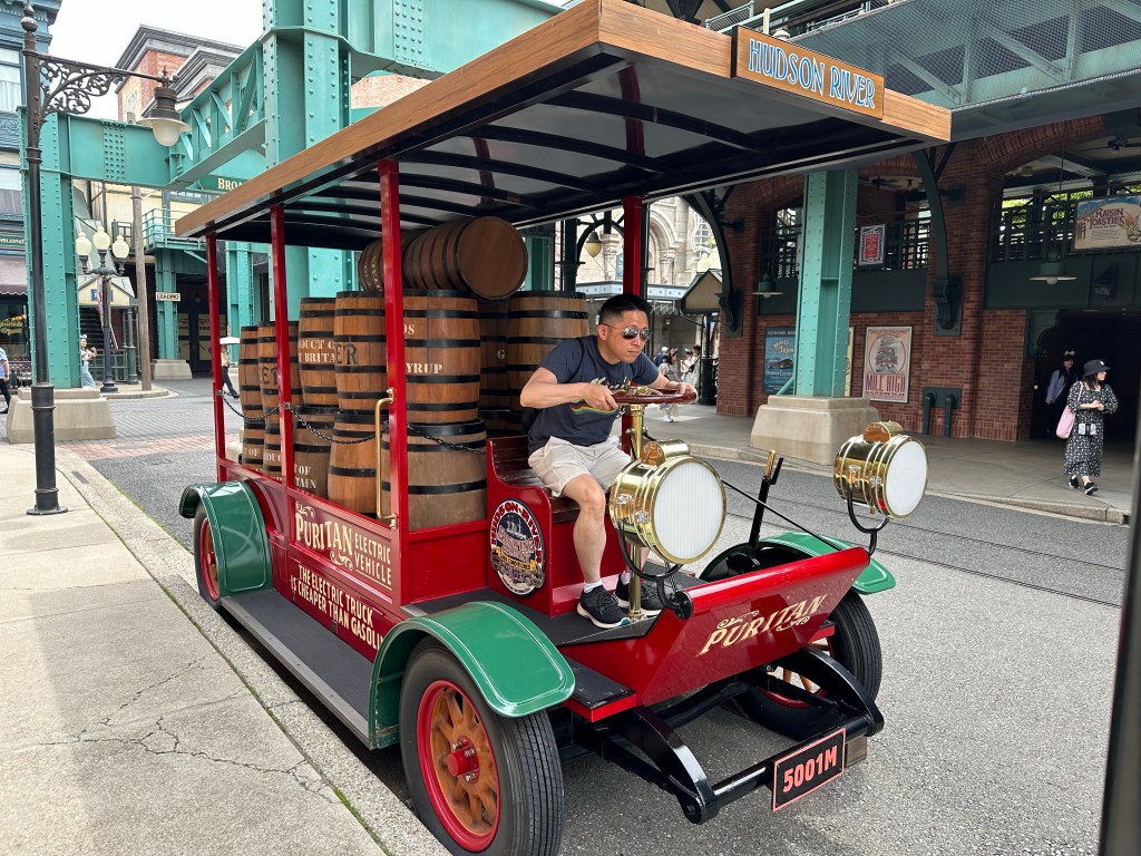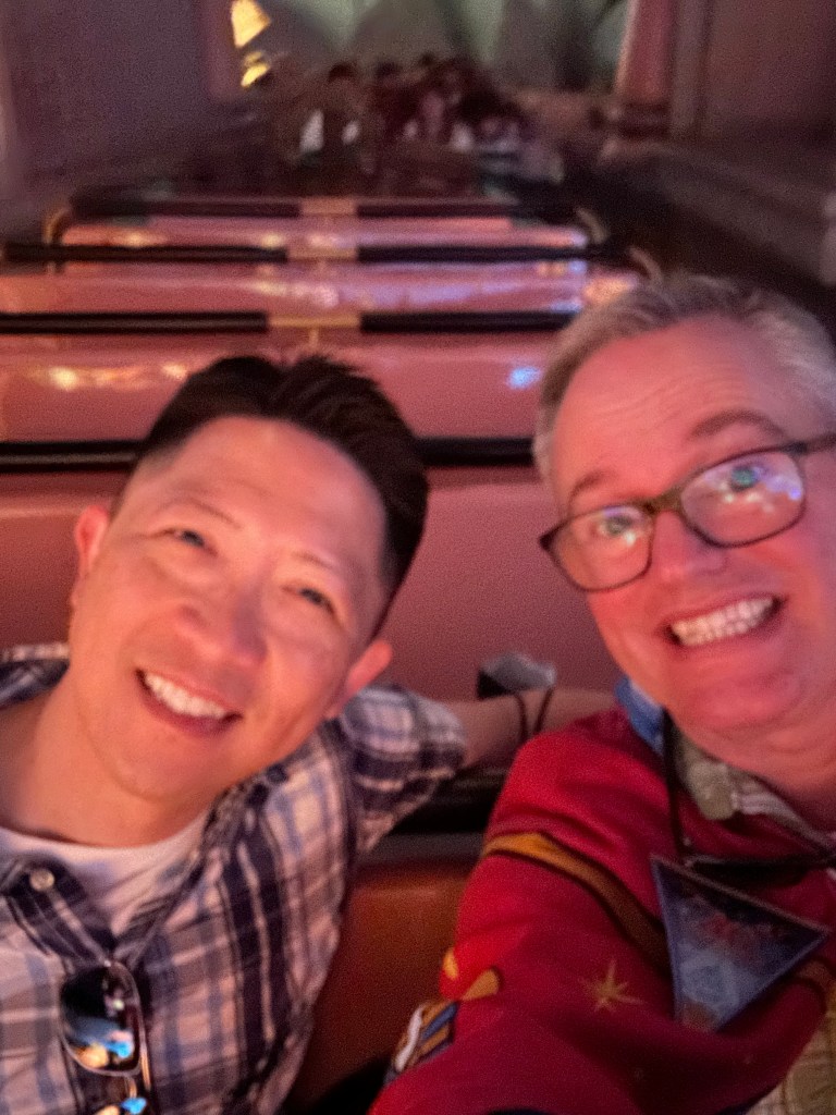 Mike wanted to do the Baymax ride (just like the Mater ride in Cars Land at Disneyland Anaheim) so we hopped in the one hour line. We’ve seen videos of people dancing with specific dance moves to the five or so songs that rotate through. We danced on the ride.