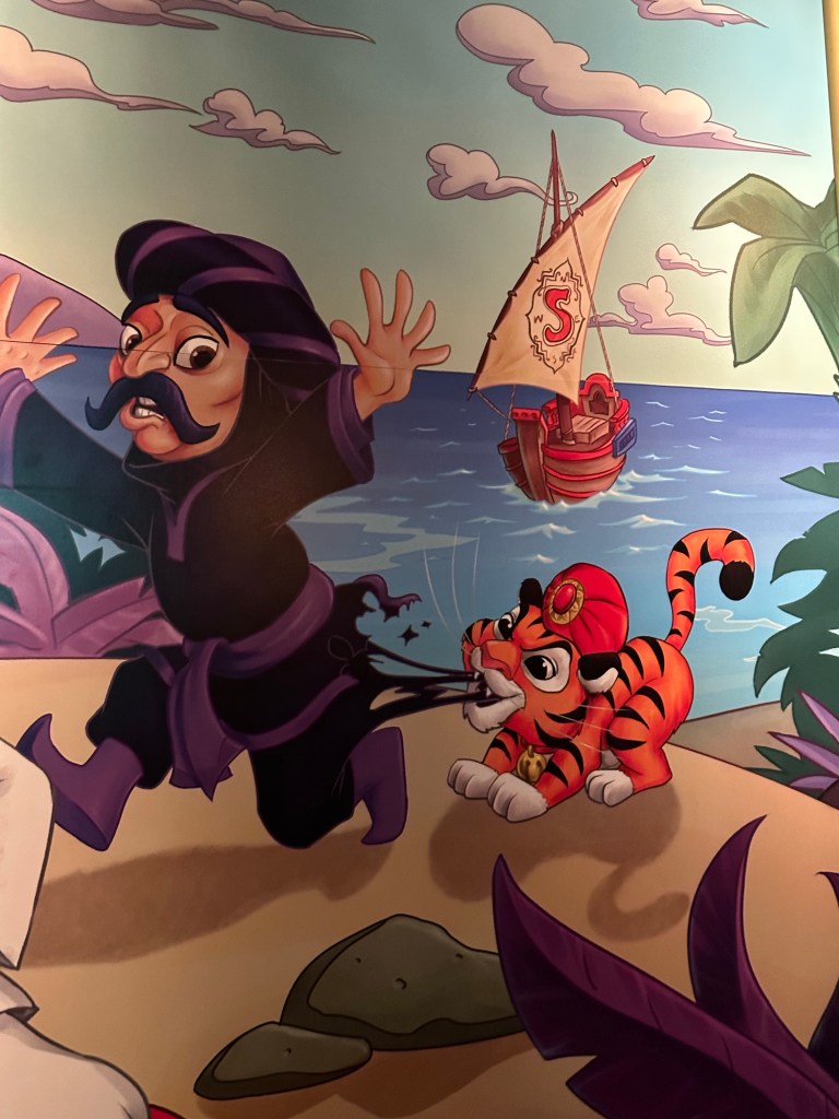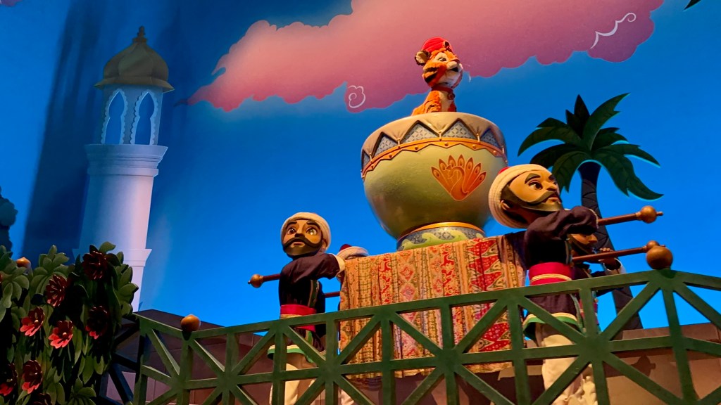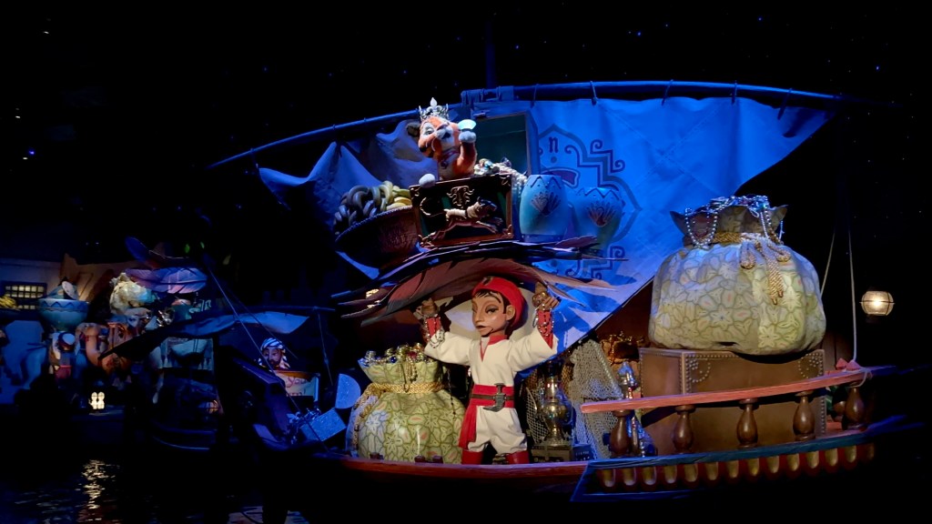 We took a boat ride to Mysterious Island Port and then walked over to one of my all time favorite rides, Sinbad’s Storybook Voyage. Super catchy but not annoying song, great animatronics including a cute baby tiger Shandu, and terrific overall design. Best canal ride of any Disney park, hands down. If you’ve got 12 minutes to burn I got a pretty good video from our last ride. Here it is.