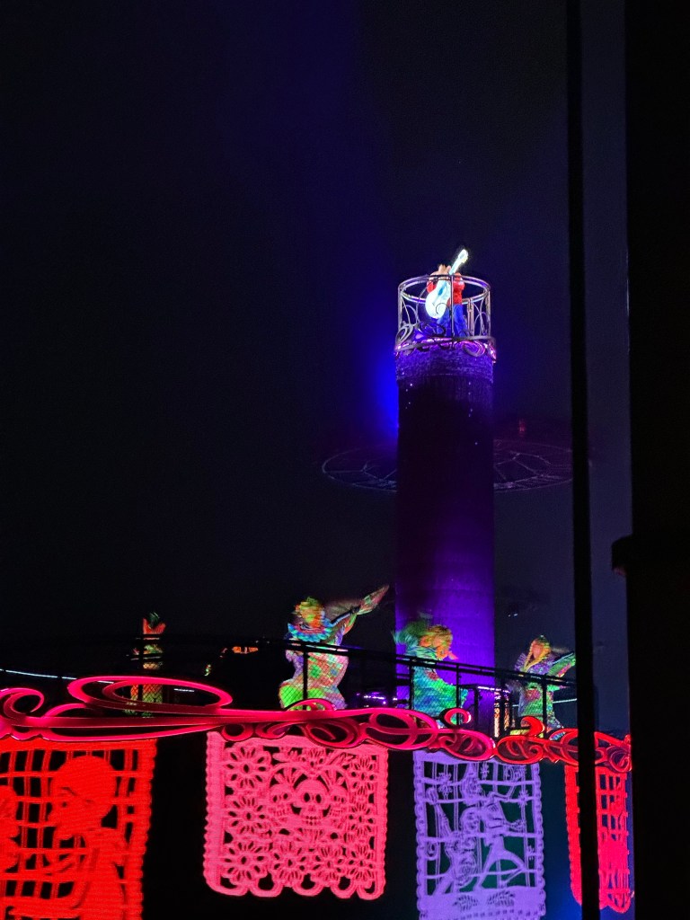 A really fun part of leaving the park was waving goodbye to the people in the windows of the Mira Costa Hotel. They used their phone lights to wave at us exiting pedestrians and we waved back at them. They’d match the moves we made with our phones. A few made a heart with two phones so we did the same. Super silly and fun. We’re gonna try to catch some video of it tomorrow night.