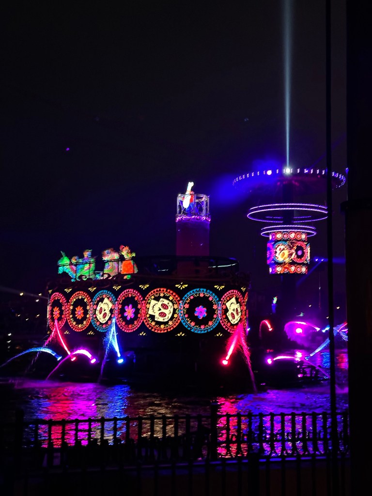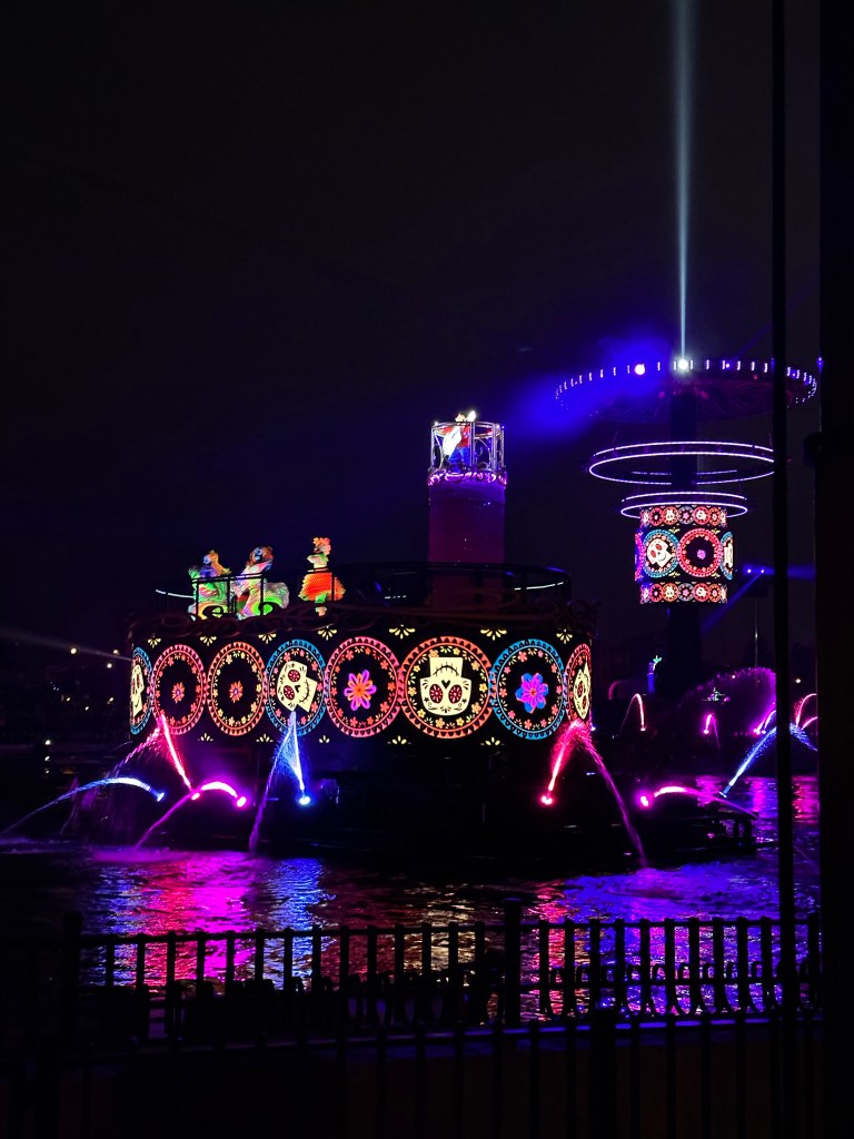 This is a ridiculous ride where you are scooted around on the water in trackless vehicles. The water is maybe 2-3” deep but looks a bit deeper from a distance. Silly ride.