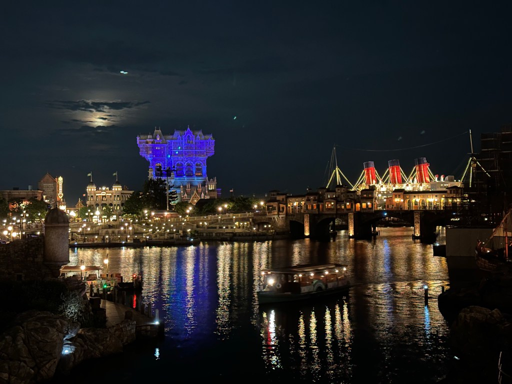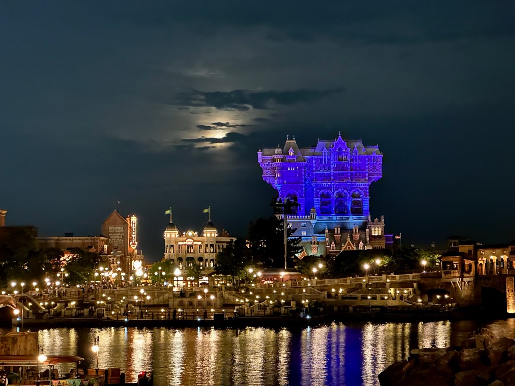 We decided to grab a quick bite at an Italian restaurant before heading over and riding Sinbad again. We slowly meandered out of the park snapping tons of photos. Full moon.