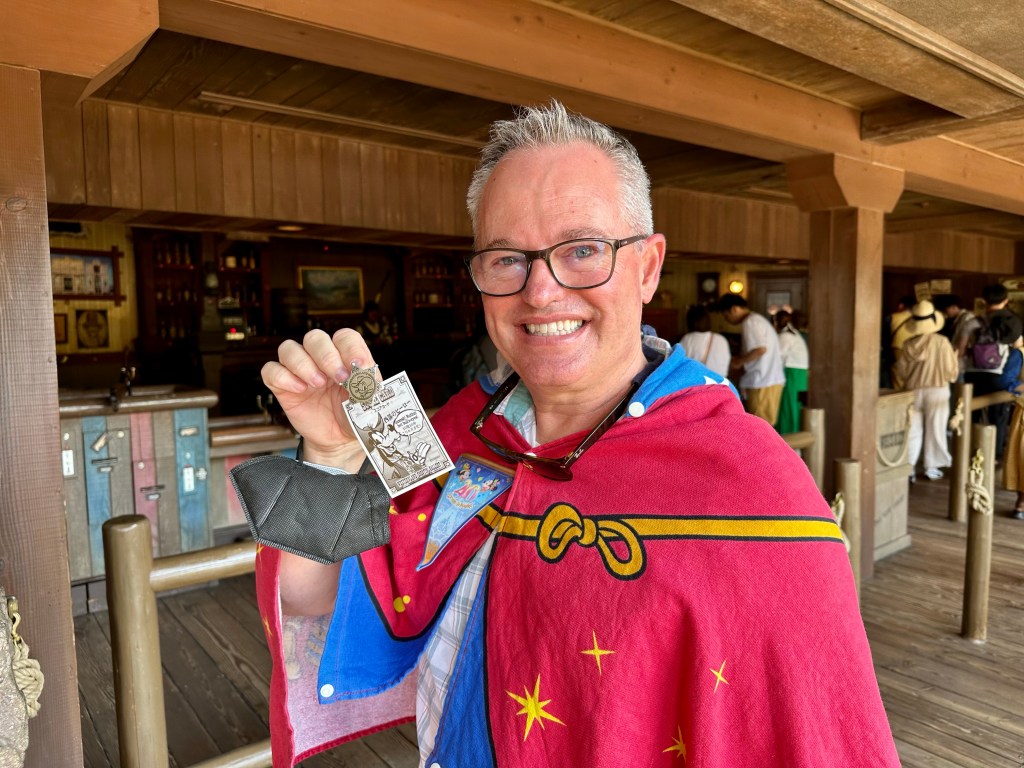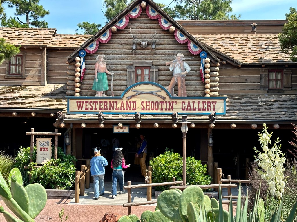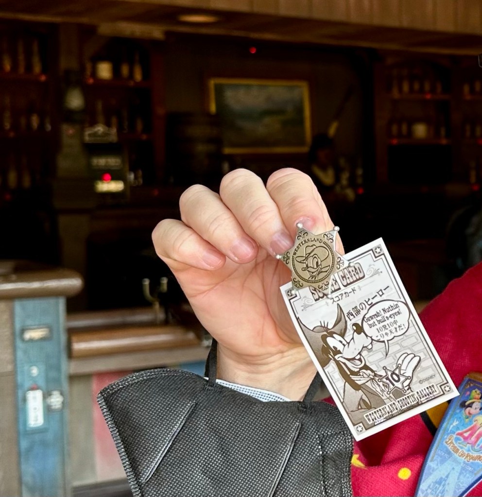 After we rode Beauty and the Beast again we headed over to the Westernland Shootin’ Gallery. I saw them hand out a prize to someone and I wanted to investigate. Turns out there’s two badges you can win, a silver badge if you get 10 out of 10 shots. A gold badge if you hit the “lucky” target, a random one out of 62 targets that changes. I won two silver badges and Mike won a gold badge. I am still burning with jealousy.