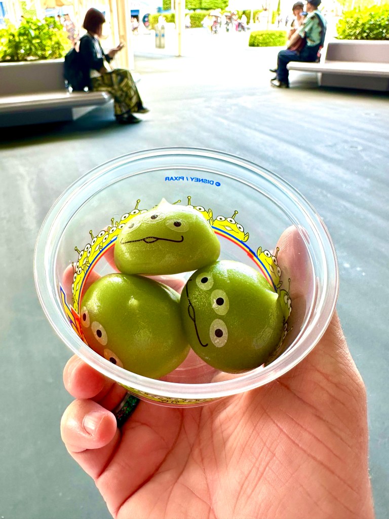 We had the above little green men mochi the last time we were in Tokyo. I’m so glad we finally found them again. Each have a different filling, strawberry, vanilla and chocolate. Yum!
