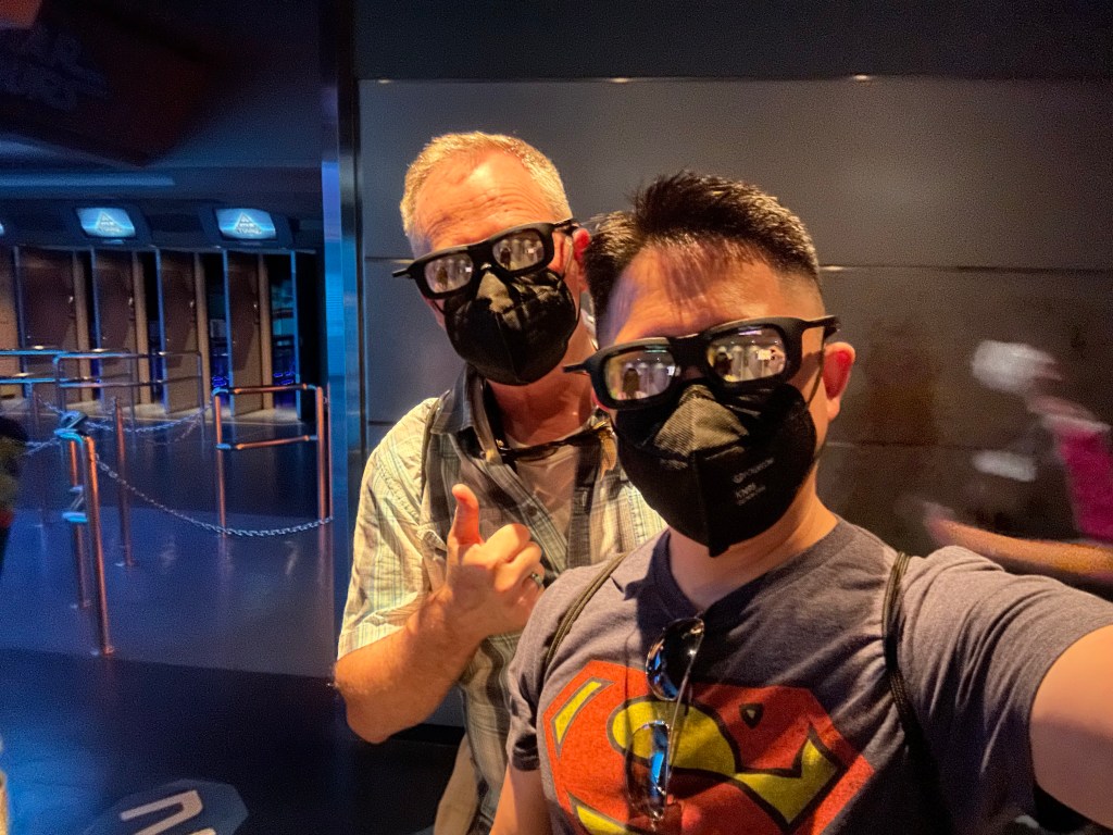 There are multiple motion sickness warnings in the ride queue so I can’t see riding this one multiple times in a row. Perhaps that’s why we only had to wait for 25 minutes to ride it?