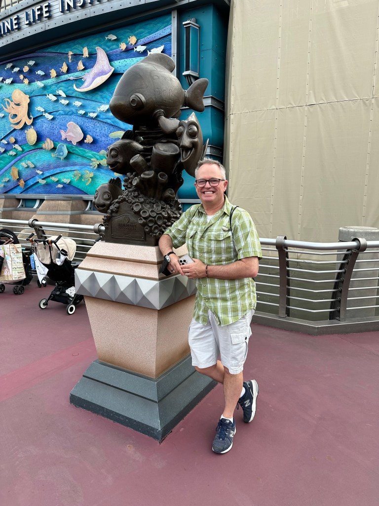 Still early, we went over to Discovery Port and rode Nemo & Friends Searider. Think a supersized Star Tours virtual ride with the cast of Nemo. “New technology” allows the Searider to be shrink down to the size of a tropical fish in which you then explore the ocean reef.